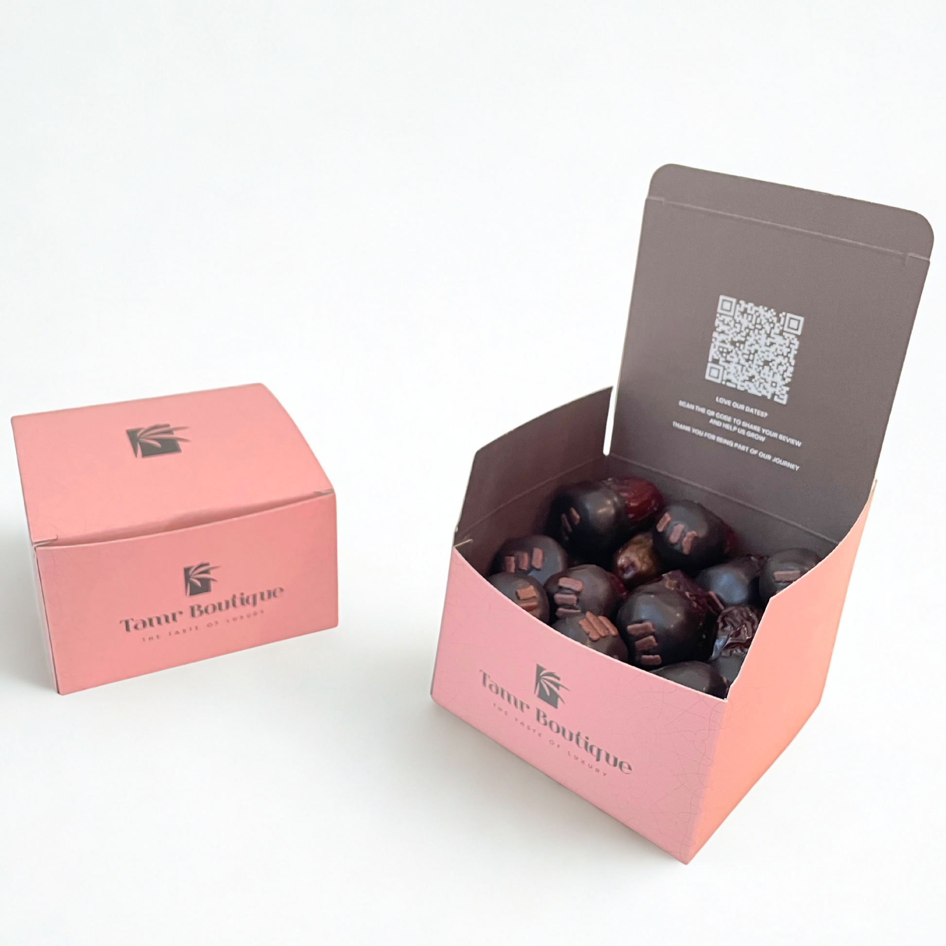 Truffle Date brings you the warm feeling of milk chocolate, the crunchy rich taste of hazelnut and the sweetness of Mejdoul date.